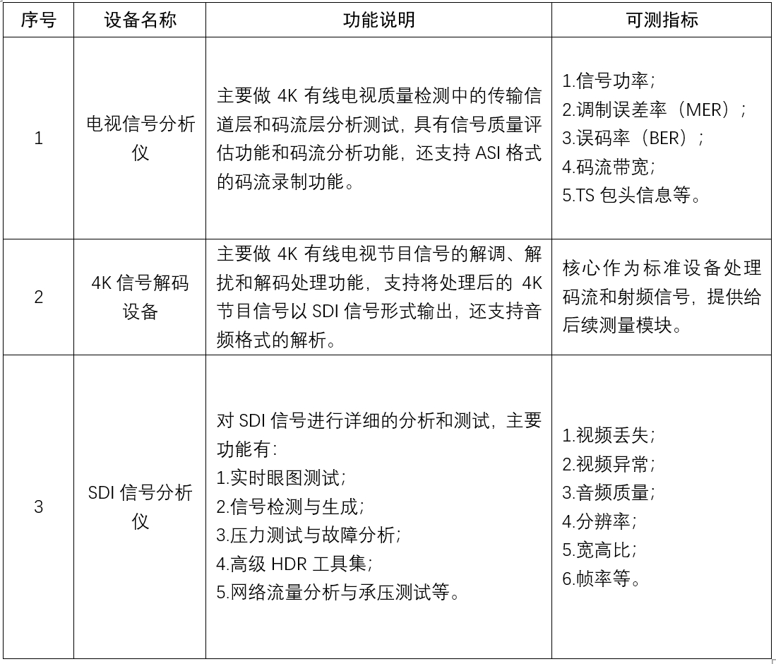 表1 4K有線數(shù)字信號&節(jié)目質(zhì)量的測試指標(biāo)