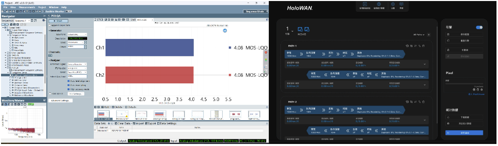 圖2 音頻分析儀POLQA功能典型測試界面 圖3 網(wǎng)絡(luò)損傷仿真儀典型測試界面