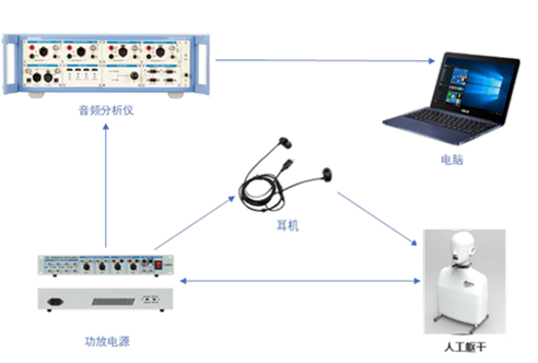 說明:測試系統(tǒng)主要包括:音頻分析儀、功放電源、人工軀干、控制電腦和被測耳機(jī)。